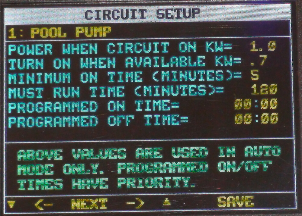 Pressing the SAVE button saves the circuit rules and takes you back to the Main display page.
