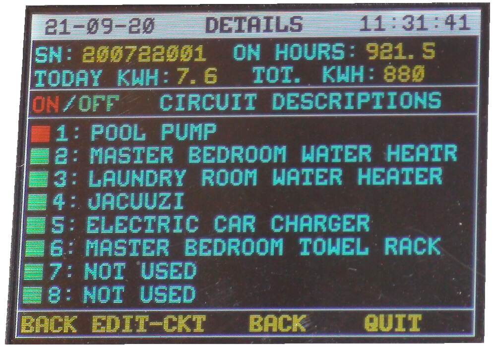 The Details page also shows which circuits are running at the moment and the EDIT-CKT button can be used to change/modify the names of the circuits.